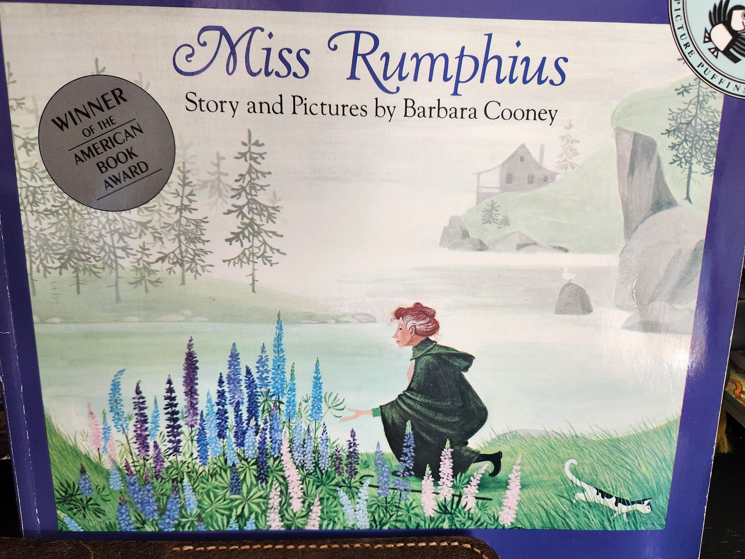 Miss Rumphius begins to sow lupine seeds wherever she goes. All over town. All over the countryside. They don’t grow immediately (no seeds do), but eventually, they sprout and grow and blossom, and when they do, the land is covered in lupines.